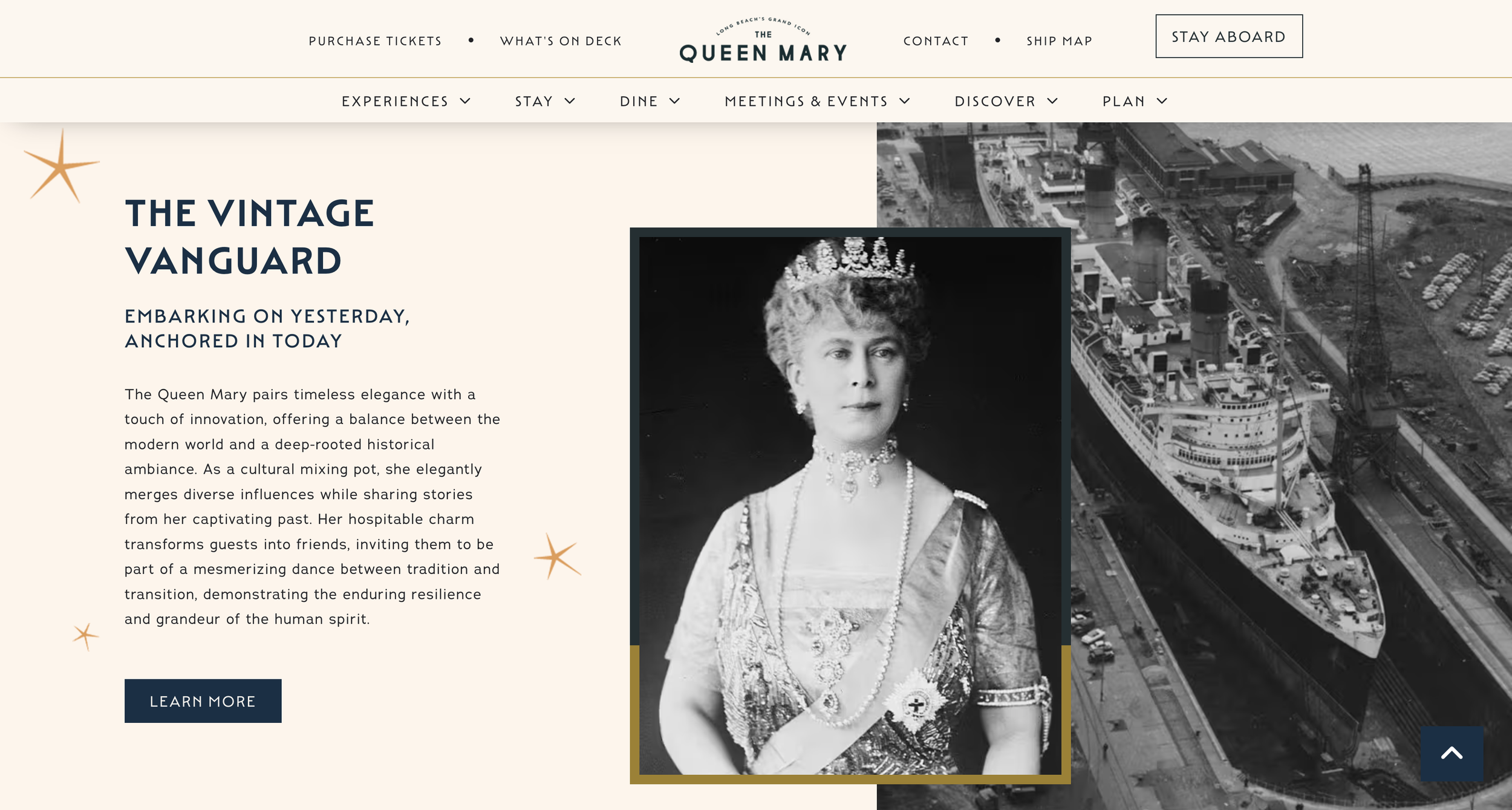 For Queen Mary’s redesign, I wanted to create a website that was as grand as the ship itself. Taking a modern approach to a classic ship, I crafted a digital experience that blends elegance with functionality- making it easier to explore, book, and emerse themselves in the Queen Mary’s legendary history.